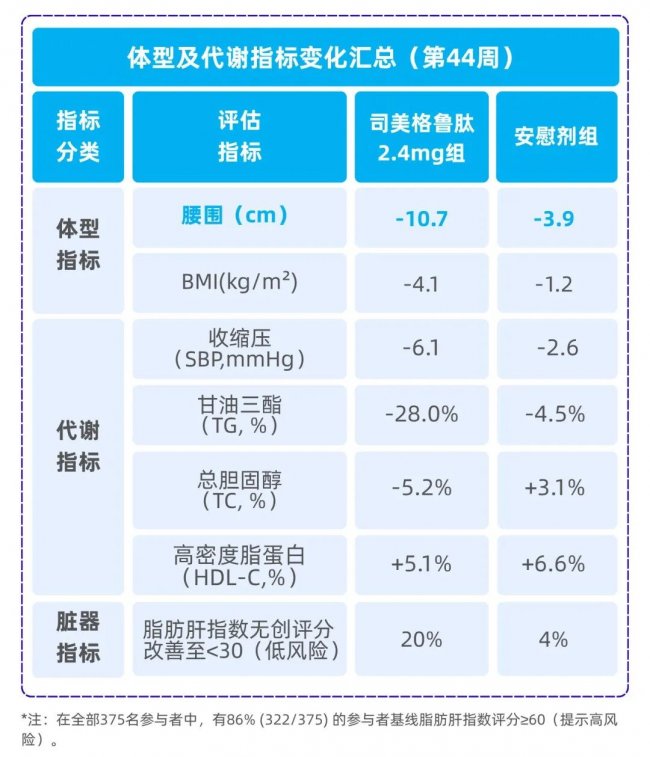 治疗44周,司美格鲁肽体型指标与其他代谢改善数据