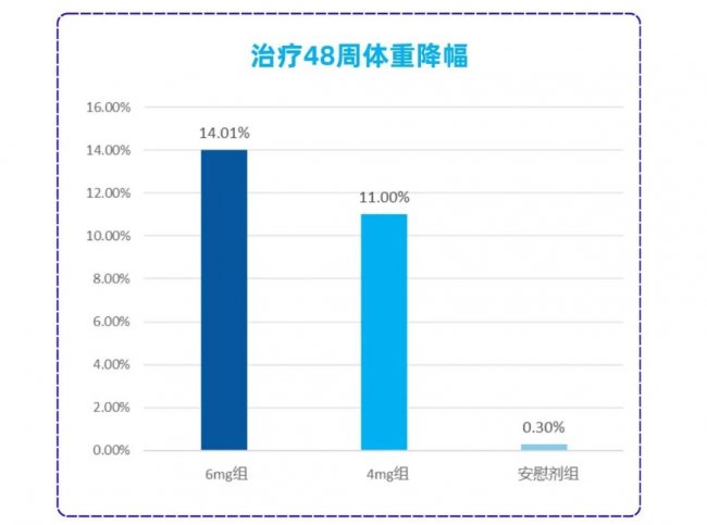 治疗48周,玛仕度肽6mg组体重降幅达14.01%