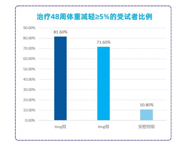 治疗48周,玛仕度肽6mg组81.6%患者体重达标(体重减轻≥5%)