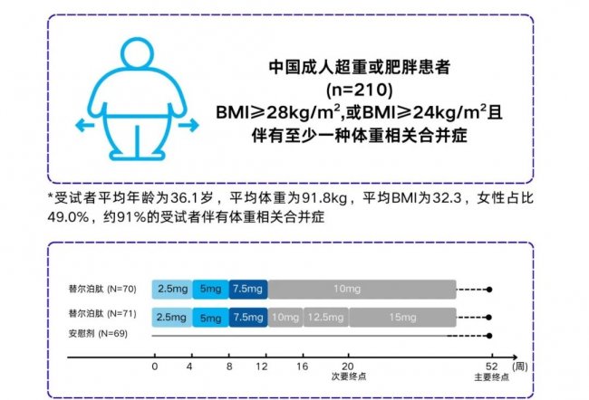 治疗52周,替尔泊肽10mg组体重降幅达13.6%