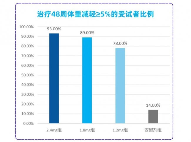 治疗48周,埃诺格鲁肽2.4mg组93%患者体重达标(体重减轻≥5%)