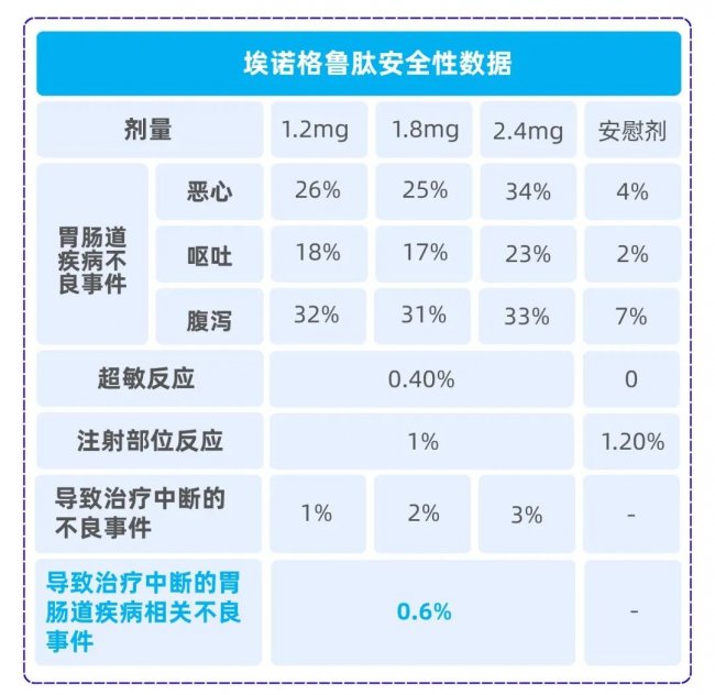 在第48周,埃诺格鲁肽2.4mg组减重≥10%的比例为80%,安慰剂组为5%;减重≥15%的比例埃诺格鲁肽组为64%,安慰剂组为1%;减重≥20%的比例埃诺格鲁肽组为28%,安慰剂组为0。