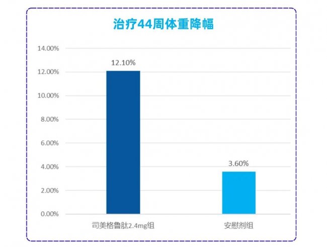治疗44周,司美格鲁肽2.4mg组体重降幅达12.1%