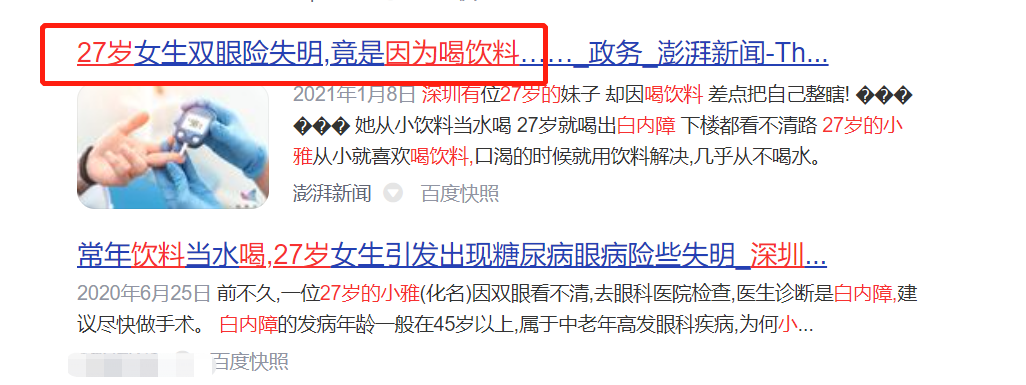 深圳有个27岁的小女孩小雅,也是因为爱喝饮料导致白内障。