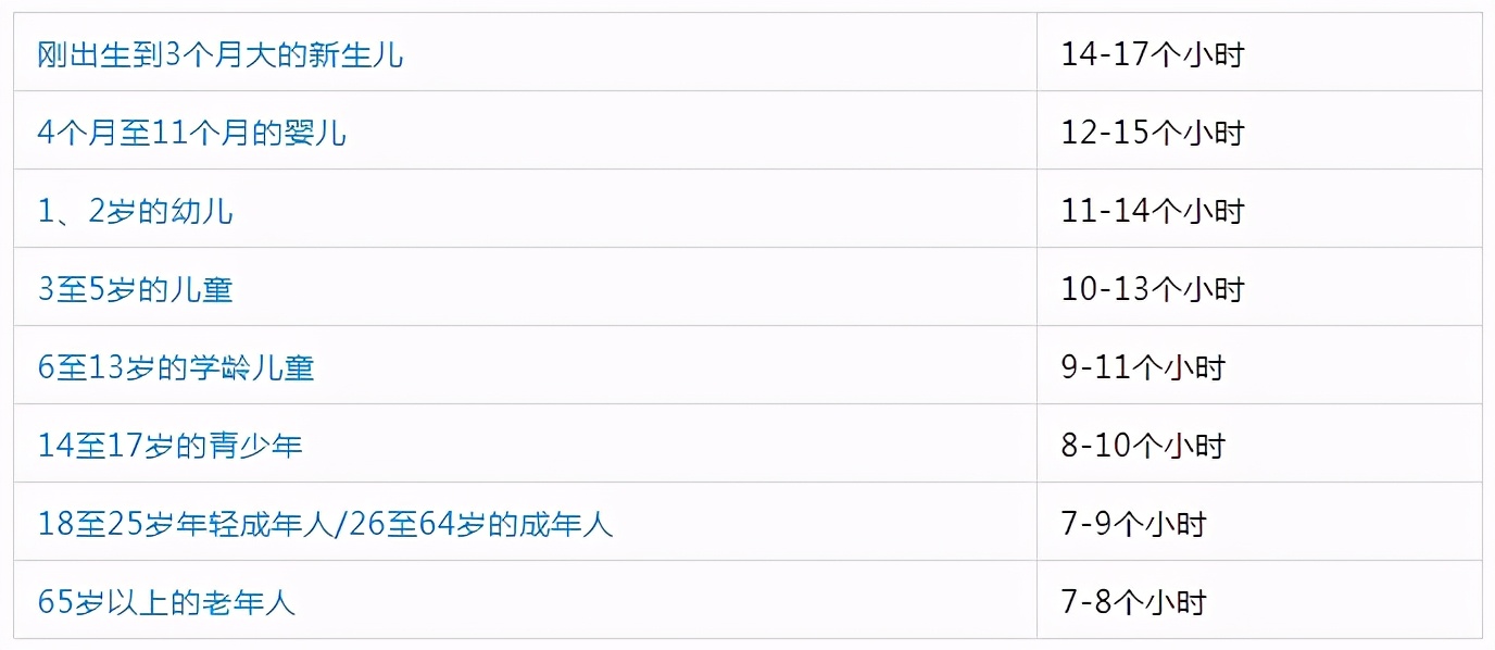 美国“全国睡眠基金会(NSF)“根据研究,给出的睡眠时间建议是这样的