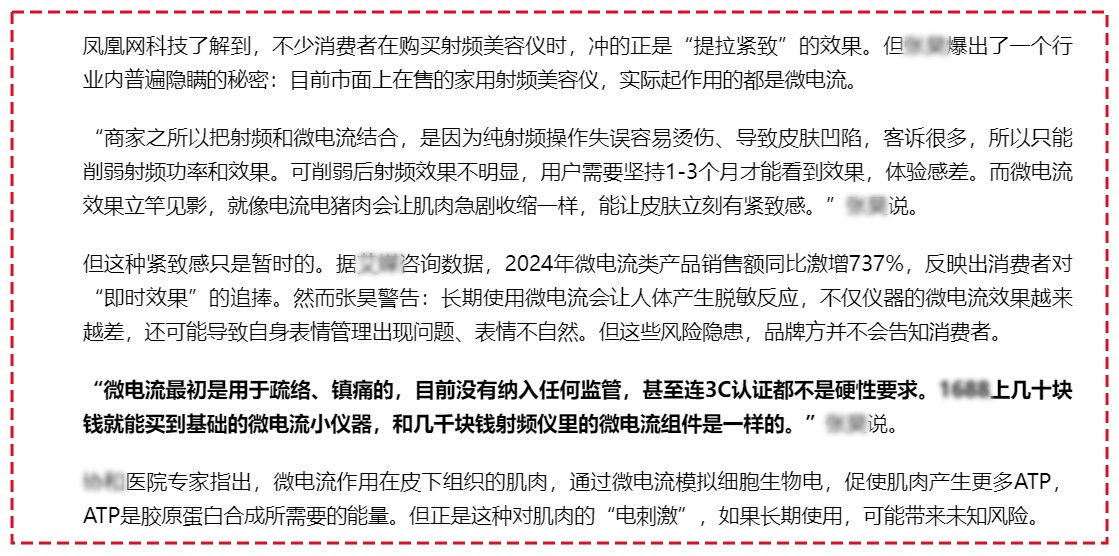 当前家用射频美容仪市场乱象丛生,暴利现象惊人,不少产品售价高昂,可核心配件及整机材料成本却低廉。产品宣传方面误导性严重,市面上很多在售的家用射频美容仪实际起作用的往往是微电流,商家将射频与微电流结合,为避免烫伤客诉而削弱射频功率和效果,却凭借微电流带来的短暂紧致感吸引消费者,然而长期使用微电流会使人体产生脱敏反应,不仅仪器效果变差,还可能影响自身表情管理。